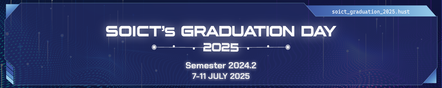 SOICT Graduation Day 2025 (học kỳ 20242) – Lễ bảo vệ đồ án tốt nghiệp của sinh viên Trường Công nghệ Thông tin và Truyền thông, Đại học Bách Khoa Hà Nội trong học kỳ 20242. Trong học kỳ này, 776 sinh viên của Trường CNTT&TT sẽ tham gia bảo vệ tốt nghiệp tại 57 hội đồng trong 18 phân ban theo các lĩnh vực khác nhau, bao gồm: