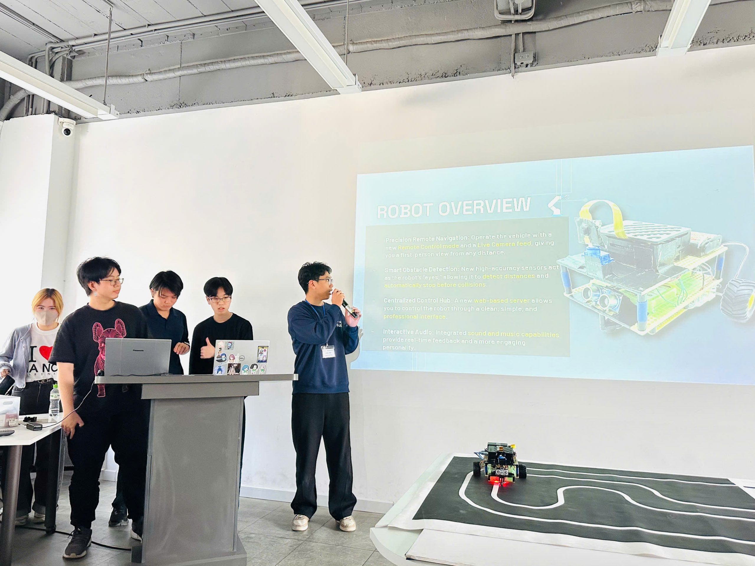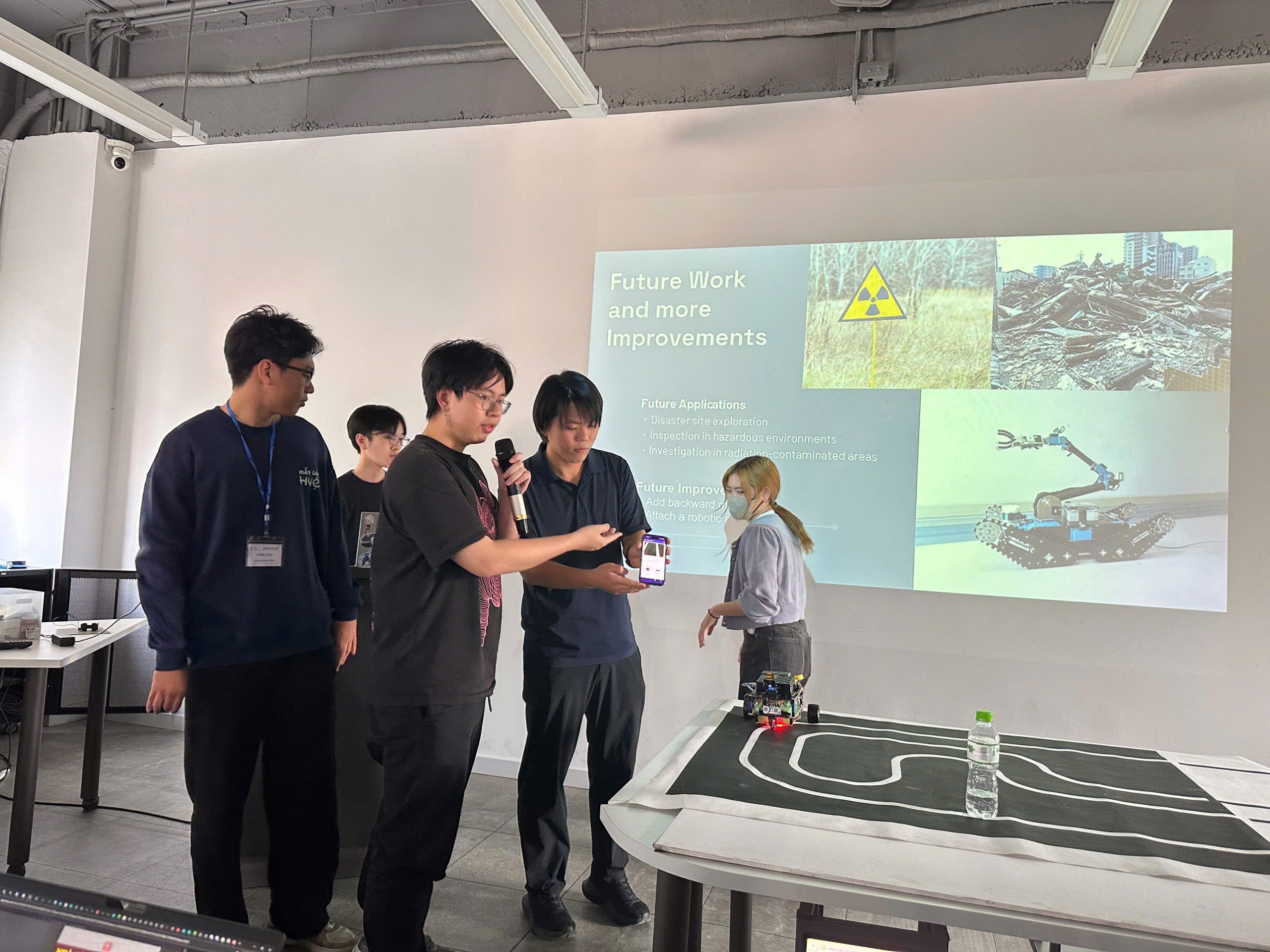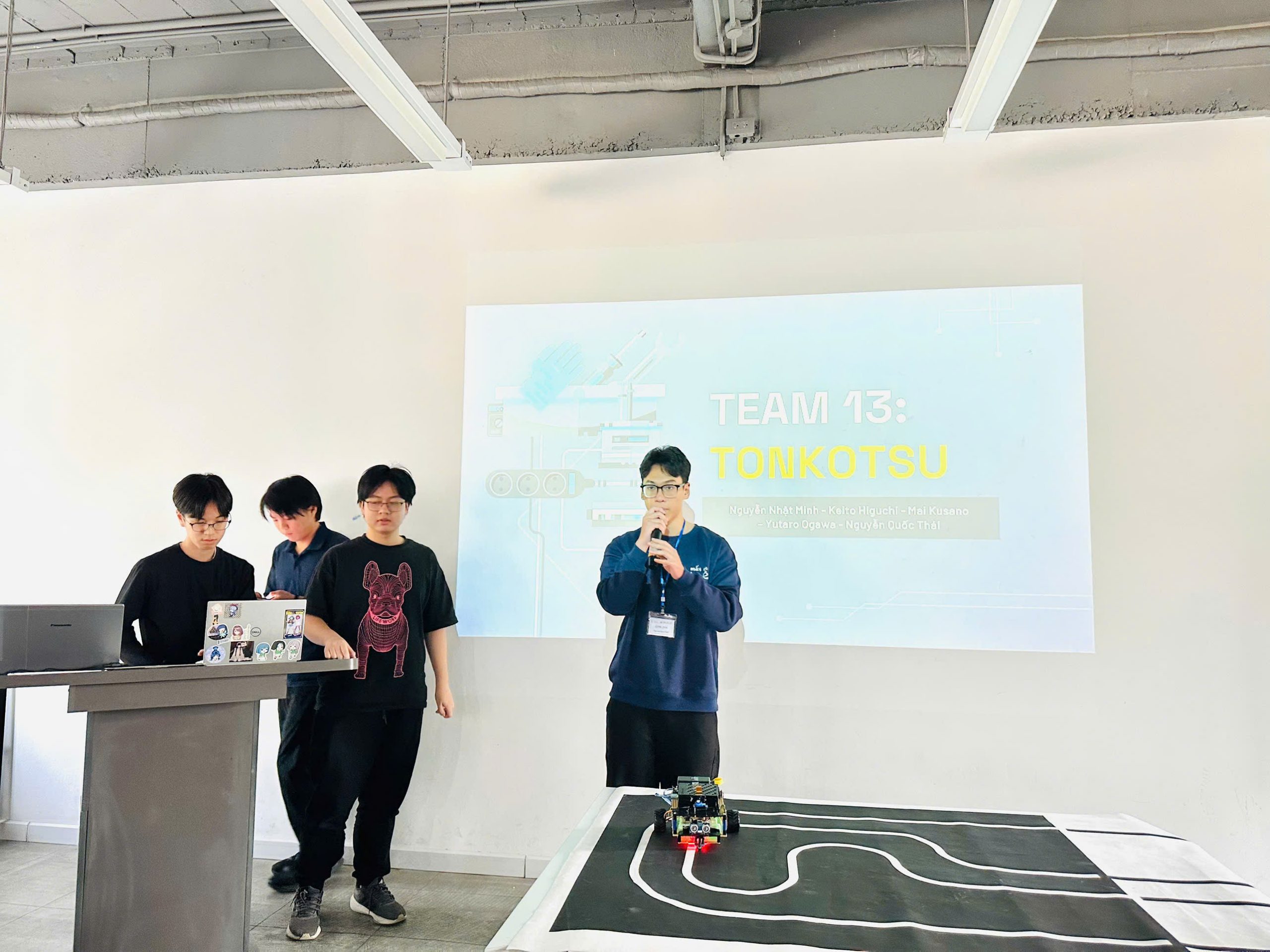 Kết thúc chương trình, tất cả các nhóm đã hoàn thành thành công nhiệm vụ thiết kế và trình diễn robot, mang đến nhiều phần demo ấn tượng. Sinh viên Trường CNTT&TT thể hiện kỹ năng lập trình tốt, khả năng thích ứng nhanh và giao tiếp tiếng Anh tự tin, trong khi sinh viên Nhật Bản gây ấn tượng bởi tư duy hệ thống, sự tỉ mỉ và phong cách làm việc nhóm chuyên nghiệp. Sự kết hợp này đã tạo nên những sản phẩm sáng tạo và những trải nghiệm học tập đáng nhớ.